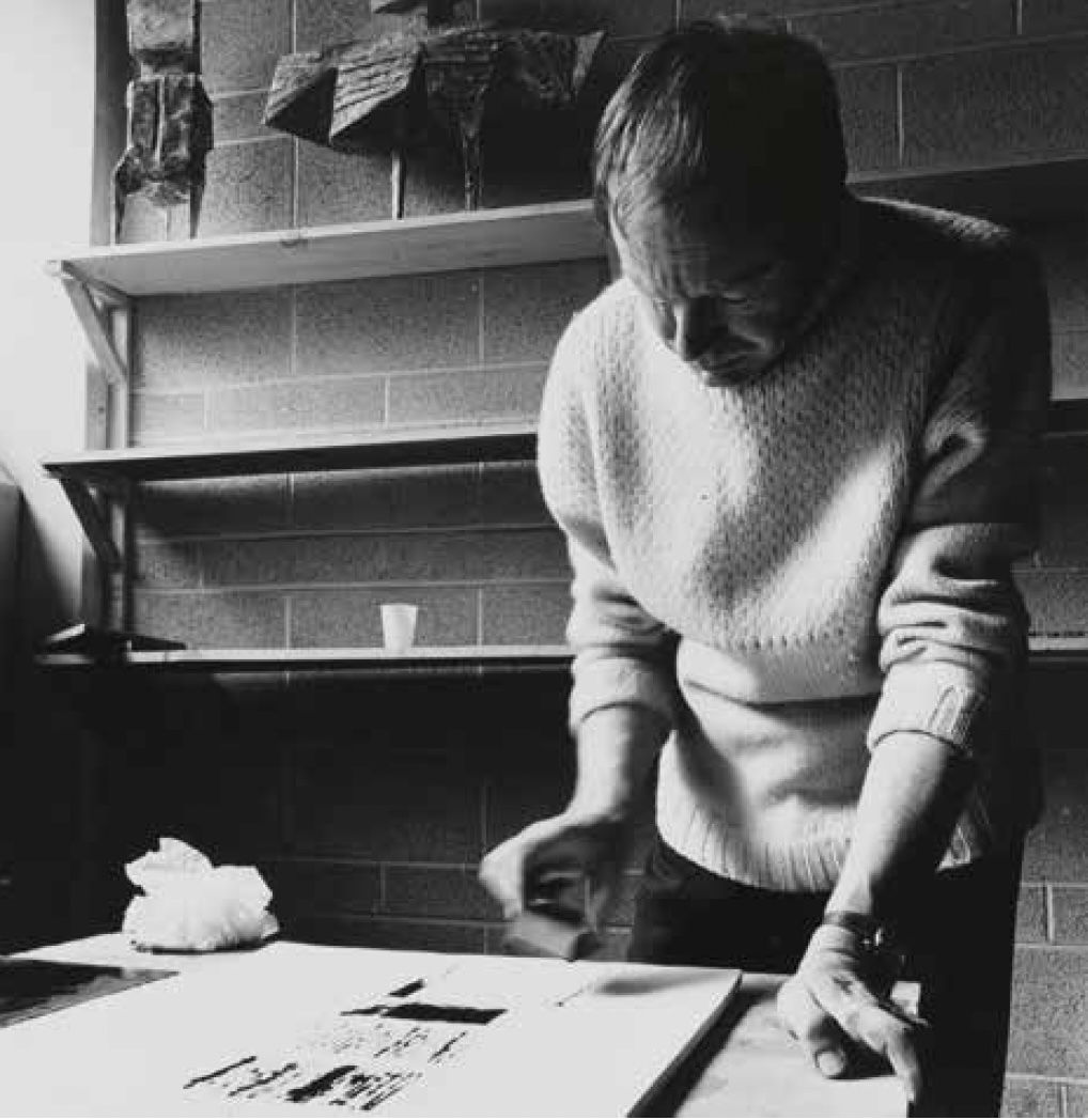 Even Beast (1950) began as a triangle drawn with the inked edge of a ruler and embellished with vigorous calligraphic marks; so successful in its simplicity that Chadwick reissued it as an etching in 2003.